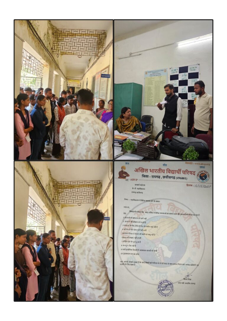 रायगढ़। अखिल भारतीय विद्यार्थी परिषद (ABVP) रायगढ़ इकाई ने महाविद्यालय में व्याप्त तमाम समस्याओं को लेकर मंगलवार को प्राचार्या को...