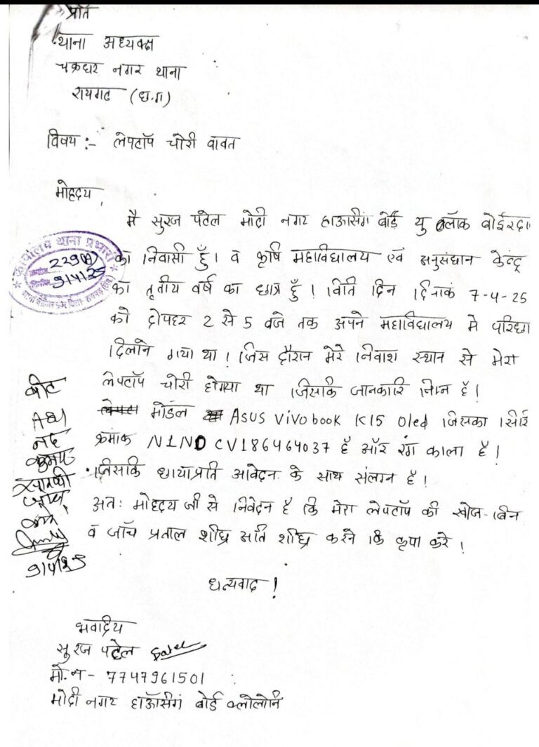 छात्र का लैपटॉप चोरी के ढाई महीने बाद भी खाली रायगढ़। जिले में दूर-दराज़ से आए छात्र न सिर्फ अपने...