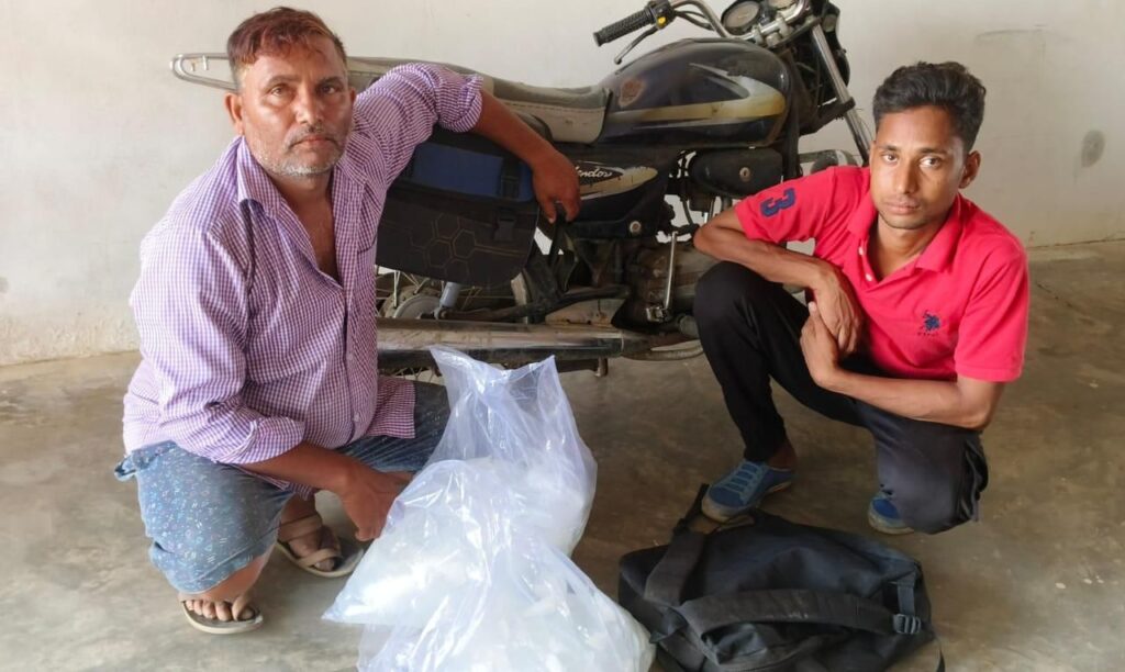 इसी प्रकार आबकारी विभाग वृत्त बिलाईगढ़ को सूचना मिली कि दो व्यक्ति ग्राम बागलोटा से पवनी नगर पंचायत की तरफ विक्रय करने हेतु दो पहिया वाहन से मदिरा परिवहन कर रहे। दो पहिया वाहन को रोककर उसमें बैठे उतरा कुमार नवरत्न एवं चंद्रप्रकाश नवरत्न से पूछताछ की गई एवं उनके आधिपत्य में रखे काले रंग के बैग की विधिवत तलाशी ली गई। विधिवत तलाशी लेने पर बैग से 130 नग पॉलीथीन के पाउचों में भरा कुल 13 लीटर कच्ची महुआ शराब को बरामद कर मौके पर परीक्षण किया गया। समस्त महुआ शराब को मौके में सीलबंद कर मदिरा एवं परिवहन में प्रयुक्त दो पहिया वाहन को कब्जा आबकारी विभाग द्वारा लिया गया हैl
