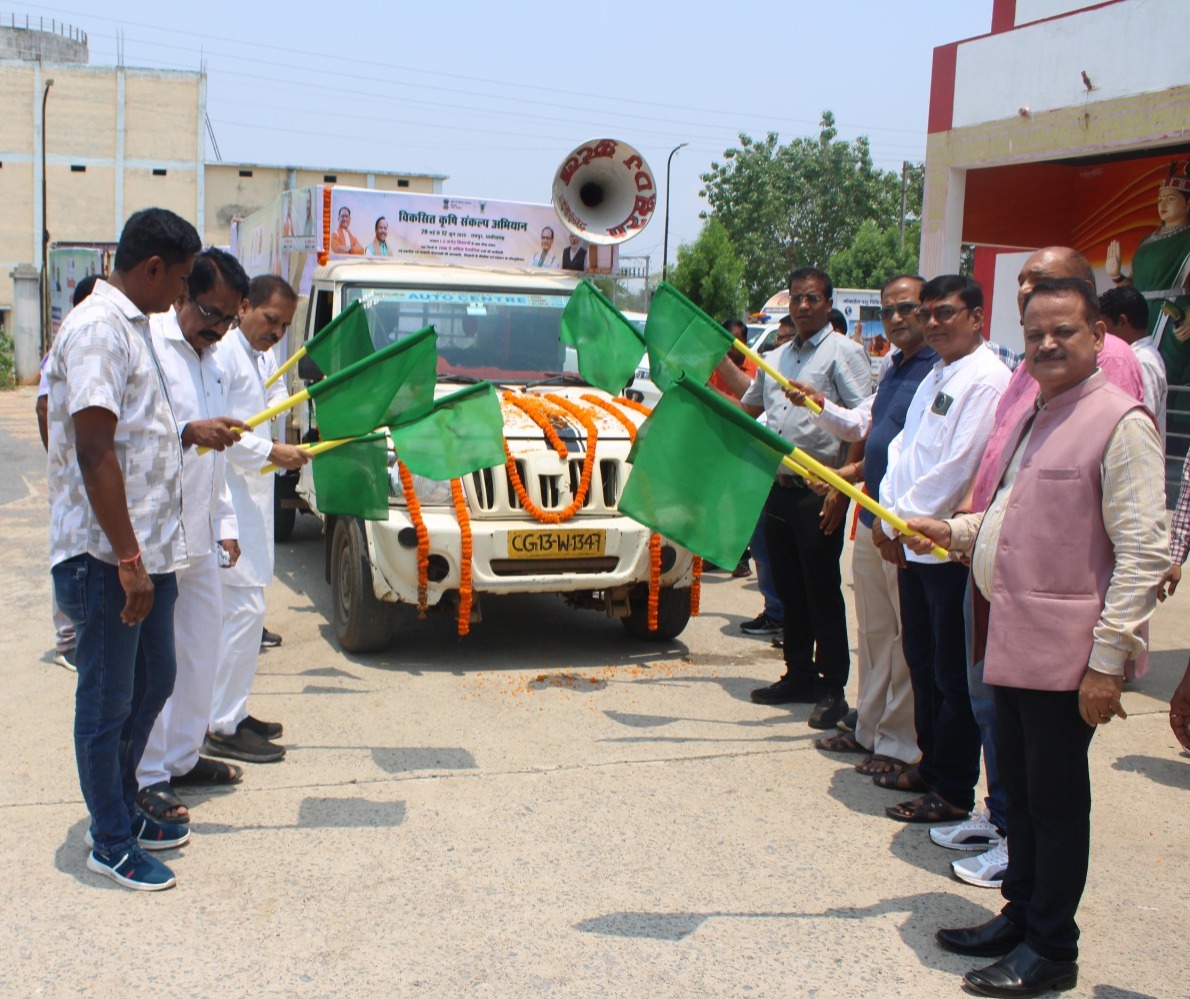 सारंगढ बिलाईगढ़, 29 मई 2025/विकसित कृषि संकल्प अभियान के तहत कलेक्टोरेट परिसर से रथ यात्रा को कलेक्टर डॉ संजय कन्नौजे एवं अतिथियों के द्वारा हरी झंडी दिखाकर रवाना किया गया। ये रथ 29 मई से 12 जून 2025 तक गांव-गांव में जाएगा और वैज्ञानिकों की टीम गांव-गांव जाकर किसानों से सीधे संवाद करेगी। अतिथियों में जिला पंचायत अध्यक्ष संजय भूषण पांडेय, सत्ताधारी दल के नेतागण ज्योति पटेल, जगन्नाथ केशरवानी, दुर्गाप्रसाद ठाकुर, अजय गोपाल, लक्ष्मण पुरी गोस्वामी, मनोज जायसवाल, हरिनाथ खुंटे, सतीश शर्मा, प्रहलाद आदित्य सहित उप संचालक कृषि आशुतोष श्रीवास्तव, पशुधन के उप संचालक डॉ. महेन्द्र पांडेय उपस्थित थे। उल्लेखनीय है कि इस अभियान से देश के 700 से अधिक जिला, 731 केवीके, 113 भारतीय कृषि अनुसंधान संस्थान, राज्य स्तरीय विभाग तथा कृषि, बागवानी, पशुपालन, मत्स्य पालन के अधिकारी तथा नवोन्मेषी किसान शामिल होंगे। इस अभियान का उद्देश्य देश भर के 1.5 करोड़ (15 मिलियन) किसानों तक पहुंचना और उनसे सीधे संवाद करना है।