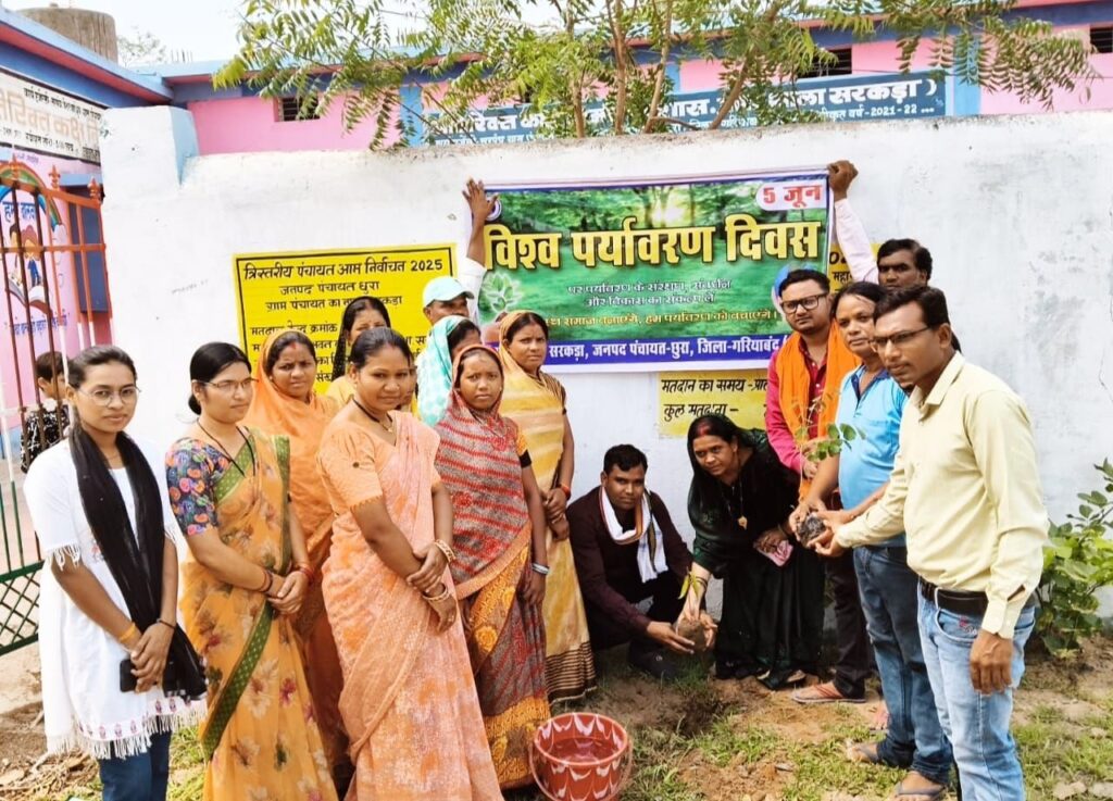 गरियाबंद/पाण्डुका, 5 जून: विश्व पर्यावरण दिवस के अवसर पर ग्राम पंचायत सरकड़ा में “एक पेड़ माँ के नाम” अभियान के अंतर्गत वृक्षारोपण कार्यक्रम का भव्य आयोजन किया गया। शासकीय माध्यमिक एवं प्राथमिक शाला परिसर में आयोजित इस कार्यक्रम में ग्रामीणजनों ने उत्साहपूर्वक भाग लिया और पर्यावरण संरक्षण का संकल्प लिया।