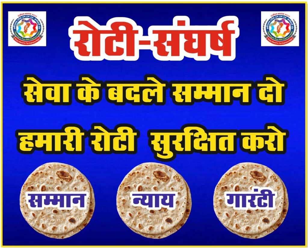रायगढ़ में कर्मचारियों ने “रोटी के बदले सम्मान” कार्यक्रम का आयोजन कर सरकार का ध्यान आकर्षित किया। मंच से स्पष्ट किया गया कि यह संघर्ष केवल वेतन या सुविधाओं तक सीमित नहीं, बल्कि सेवा के बदले सम्मान और सुरक्षित भविष्य की गारंटी के लिए है।