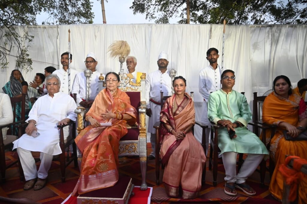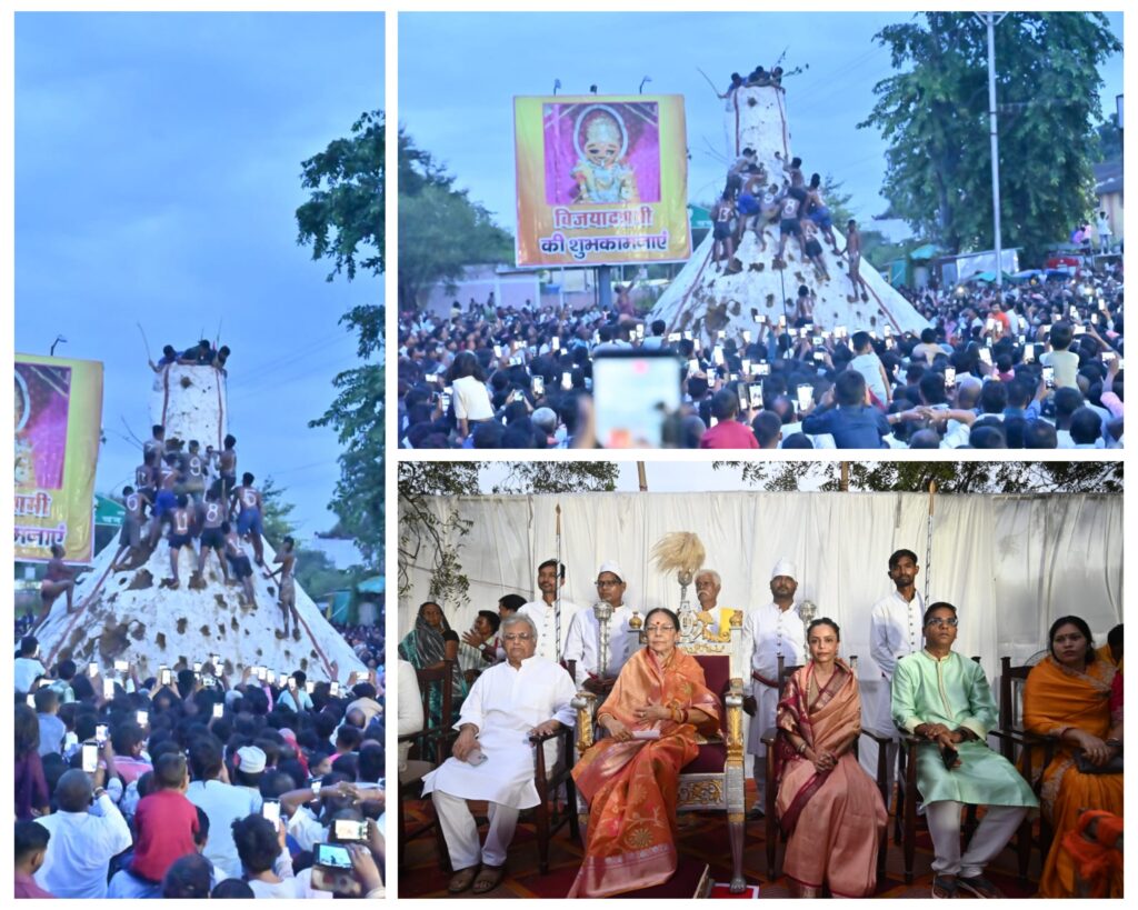सारंगढ़ बिलाईगढ़, 3 अक्टूबर 2025/विजयादशमी पर्व पर रियासतकालीन गढ़ विच्छेदन सारंगढ़ दशहरा हर्षौल्लास के साथ मनाया गया। सारंगढ़ राज परिवार के डॉ मेनका देवी सिंह (वर्तमान राजा), उनके पति डॉ परिवेश मिश्रा, पुत्री कुलिशा सिंह के साथ इस वर्ष कलेक्टर डॉ संजय कन्नौजे, विधायक उत्तरी जांगड़े की उपस्थिति ने अंचल के लोगों के उत्साह को दोगुना किया। कलेक्टर इस उत्सव में शामिल होकर साक्षी बने। सारंगढ़ राजा के द्वारा शांति और समृद्धि सहित क्षेत्रवासियो को विजयीदशमी पर्व का शुभकामनाये प्रदान किया गया।