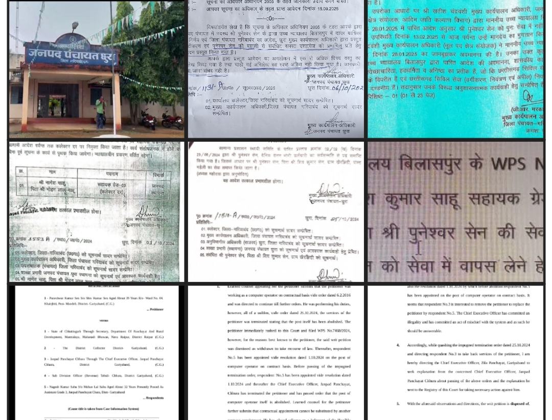 गरियाबंद, छत्तीसगढ़ दिनांक – 10/10/2025 छुरा जनपद पंचायत में न्यायालय के आदेश की खुलेआम अवहेलना, जिम्मेदार अधिकारी बने मौनदर्शक