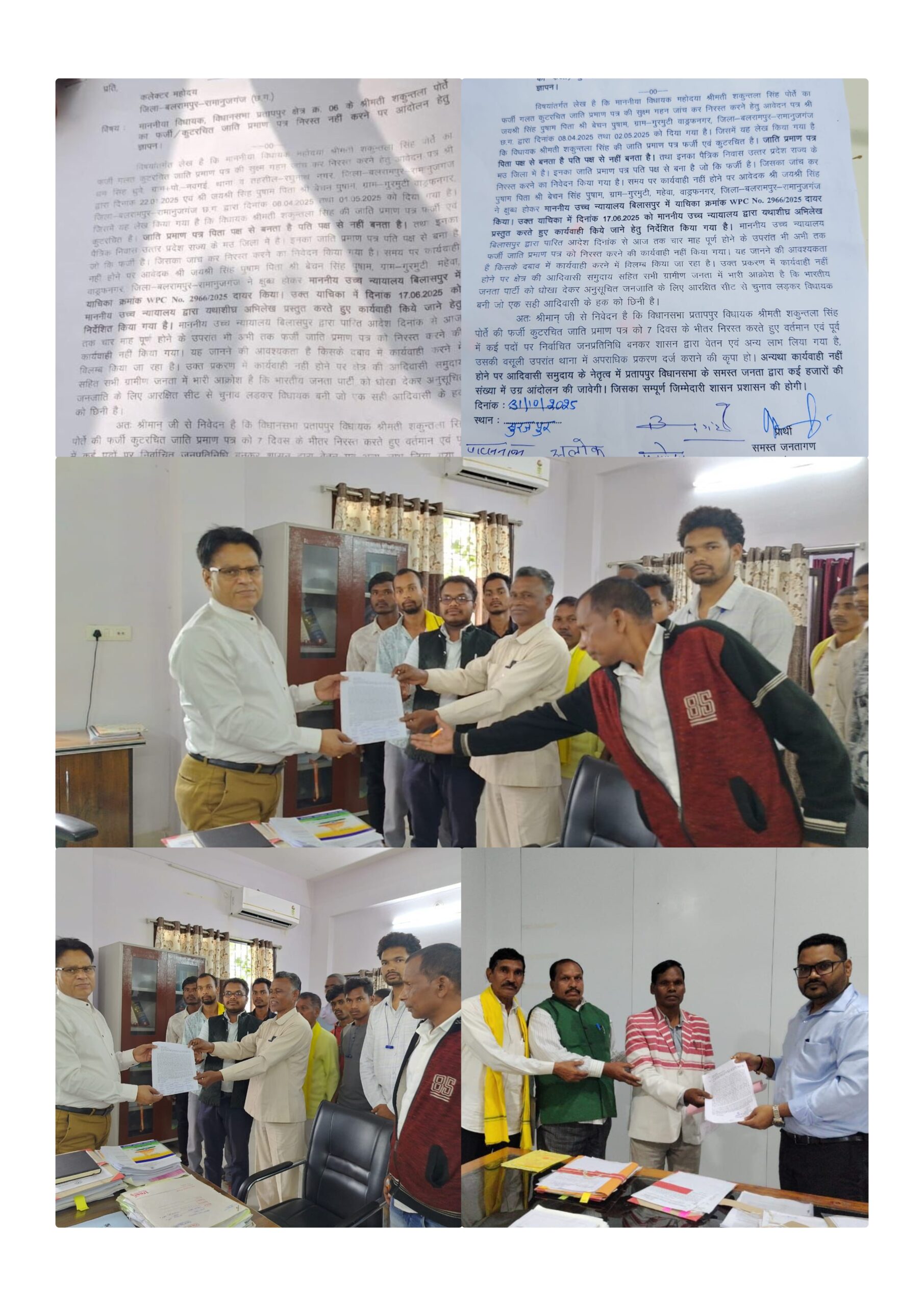 रायपुर/सरगुजा । विशेष रिपोर्ट छत्तीसगढ़ के प्रातापपुर विधानसभा क्षेत्र की विधायक श्रीमती शकुंतला सिंह पोर्ते का जाति प्रमाणपत्र कथित रूप से फर्जी व कुट–रचित बताते हुए क्षेत्र में राजनीतिक और सामाजिक विवाद गहराता जा रहा है। आदिवासी समाज ने प्रमाणपत्र रद्द करने की मांग उठाई है और प्रशासन पर कार्रवाई के लिए दबाव बना दिया है।