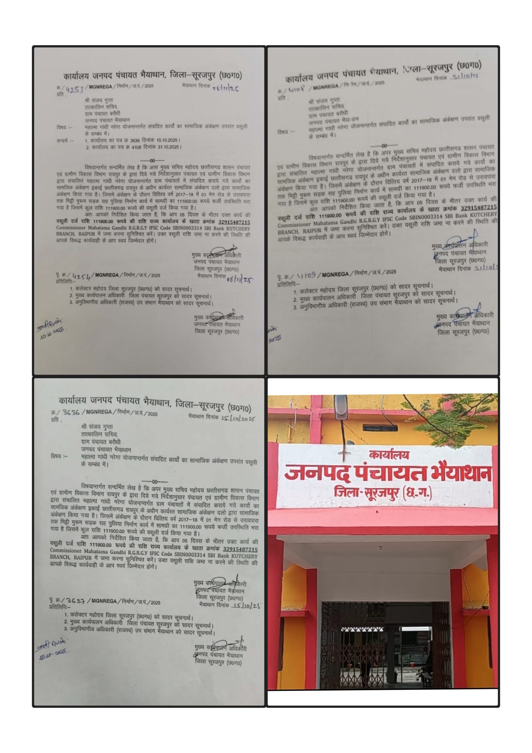 सामाजिक अंकेक्षण में फर्जी मजदूर उपस्थिति पाई गई ₹1,11,900 की वसूली की जानी है पांच दिन के भीतर राशि जमा करनी होगी SBI रायपुर के खाते में राशि जमा न करने पर कार्रवाई