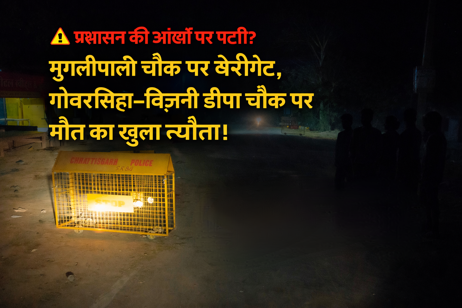 प्रशासन की आंखों पर पट्टी?मुगलीपाली चौक पर बेरीगेट, गोबरसिंहा–बिजनी डीपा चौक पर मौत का खुला न्योता!