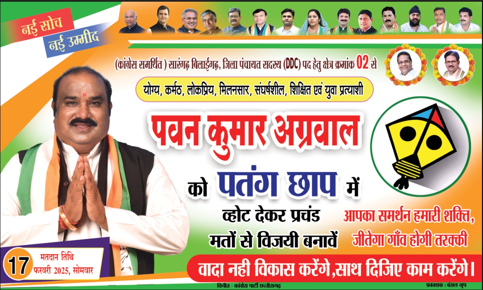 सारंगढ़ बिलाईगढ़/गांवों में चुनावी माहौल के बीच पवन अग्रवाल भैया के प्रति जनता का झुकाव दिन-ब-दिन बढ़ता जा रहा है। क्षेत्रीय मतदाताओं में उनकी लोकप्रियता का स्तर इस बार उच्चतम स्तर पर है। विभिन्न क्षेत्रों में उनका प्रभाव स्पष्ट रूप से दिख रहा है। गांव-गांव में पवन अग्रवाल के पक्ष में लोग उत्साह के साथ प्रचार कर रहे हैं, जिससे उनकी विजय की संभावना और भी मजबूत हो गई है।