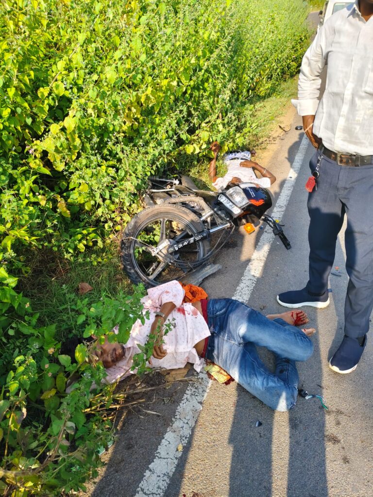 छुरा/,शुक्रवार दोपहर करीब साढ़े तीन बजे छुरा ब्लॉक मुख्यालय के सारागंव पापराही के पास एक भीषण सड़क दुर्घटना में दो...